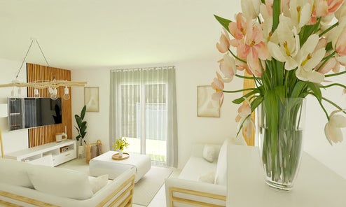 La nature s'est donc invitée dans ce salon cosy et lumineux dans lequel nous avons apporté de la chaleur en mélangeant du mobilier blanc et du bois clair. Un duo qui forme à coup sûr un combo gagnant.