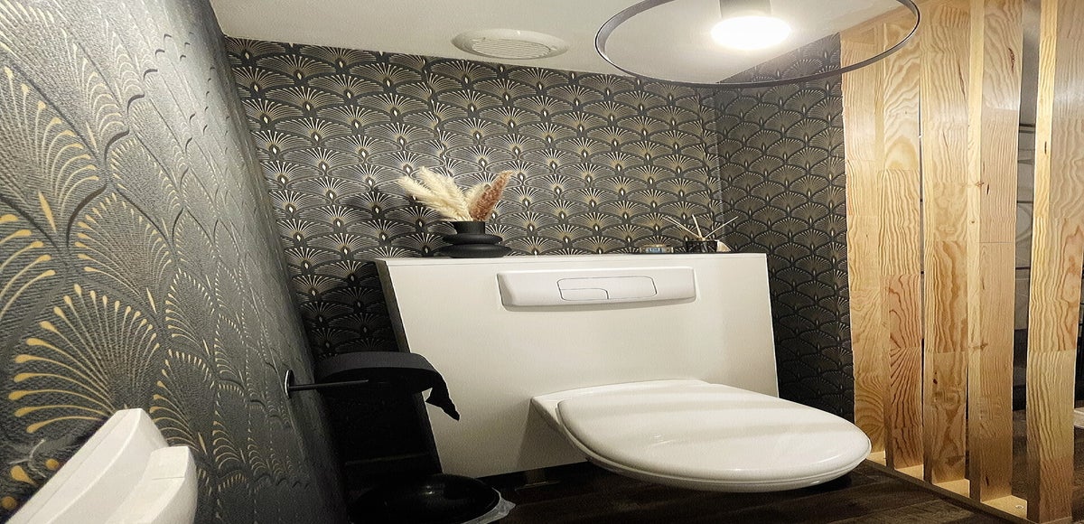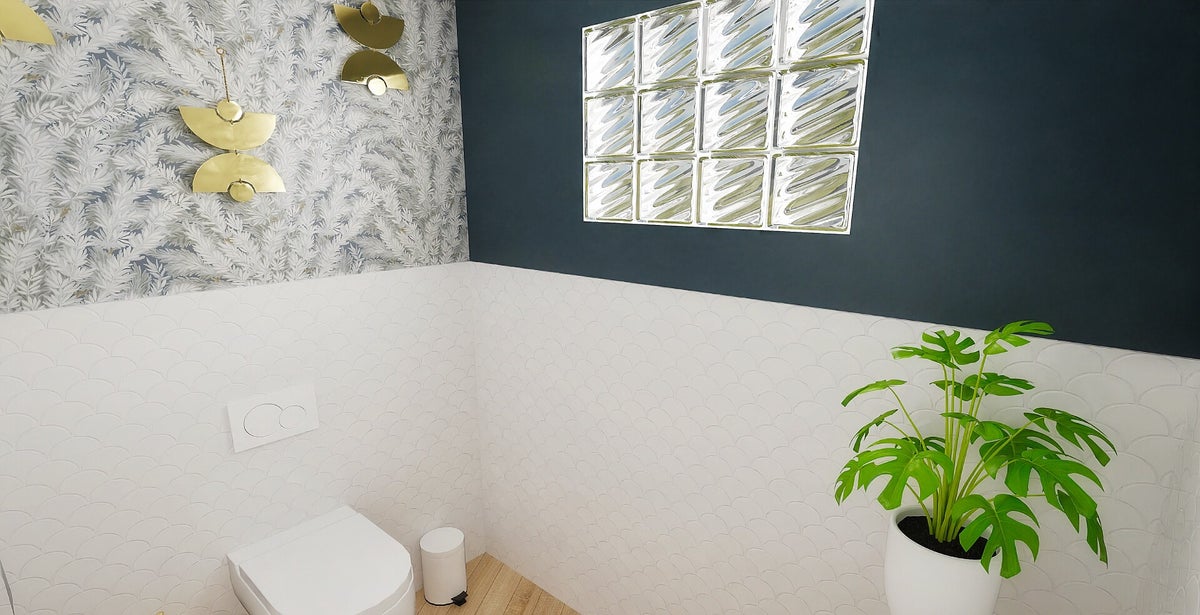 Papier peint à motifs noir afin d'apporter du caractère et ajout d'accessoires noirs.